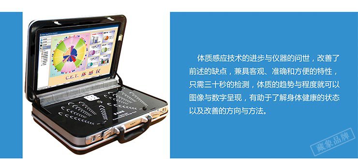 体感仪基于中医基础理论:中医体质学、经络学、藏象学说、气血学说为指导,由藏象集团联合台湾上医健康20多年的自主研发经验,研发出领先国际的核心专利【电磁感感应技术】,取得大陆与台湾两岸的新型与发明专利。此技术应用于领先全球的PHCS 【经络道】与【实时监测经络仪】等检测没备。综合了【电磁感应技术】多年来的所有特点与优势,主要针对医疗科技学术研究单位、医疗卫生服务机构、养生保健服务机构、健康体检中心、养老护理中心等而设计的高科技检测设备。本设备最大的价值在于【健康评估与预测】,可在体内脏腑发生实质上的异变之前,就能藉由体质机能的异常而提早发现潜戴在人体中各种不良体质的因素,预先防范疾病的发生,以中西医合并的方法协助受测者了解并有效的改善健康,给出个性化干预方案,制定综合性健康管理档案。