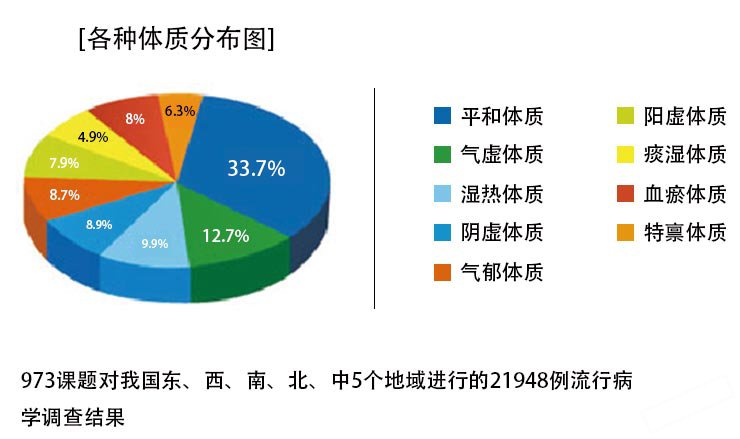 体质是中国人养生保健的独特传统,长久以来受到全民的重视,并具体实践在中国人的日常生活中。体质的形成受先天、年龄、性别、精神状态、生活、饮食、地理环境、气候、疾病、体育锻炼、社会等众多因素的影响;以地理环境为例,不同的水土性质、气候类型、生活条件,影响着不同地区的人的体质。一般而言,中国北方人阳虚体质和见寒象者为多,南方人病多火热而体质多阴虚。