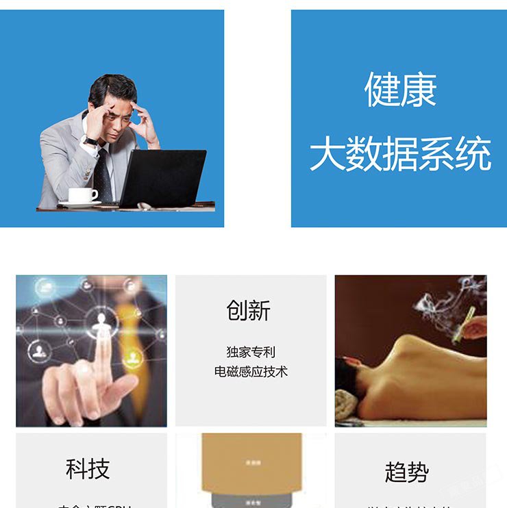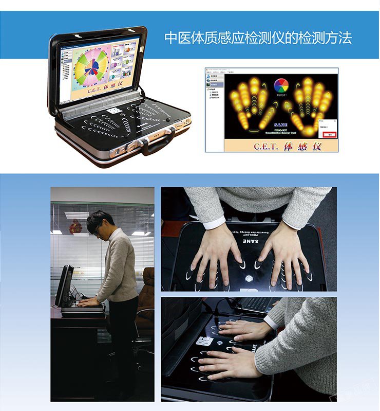 体感仪基于中医基础理论:中医体质学、经络学、藏象学说、气血学说为指导,由藏象集团联合台湾上医健康20多年的自主研发经验,研发出领先国际的核心专利【电磁感感应技术】,取得大陆与台湾两岸的新型与发明专利。此技术应用于领先全球的PHCS 【经络道】与【实时监测经络仪】等检测没备。综合了【电磁感应技术】多年来的所有特点与优势,主要针对医疗科技学术研究单位、医疗卫生服务机构、养生保健服务机构、健康体检中心、养老护理中心等而设计的高科技检测设备。本设备最大的价值在于【健康评估与预测】,可在体内脏腑发生实质上的异变之前,就能藉由体质机能的异常而提早发现潜戴在人体中各种不良体质的因素,预先防范疾病的发生,以中西医合并的方法协助受测者了解并有效的改善健康,给出个性化干预方案,制定综合性健康管理档案。